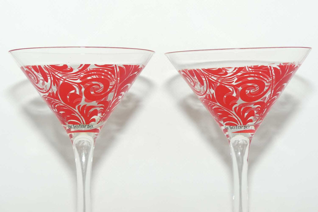 Vintage Pair of Martini Glasses | Red Swirl pattern