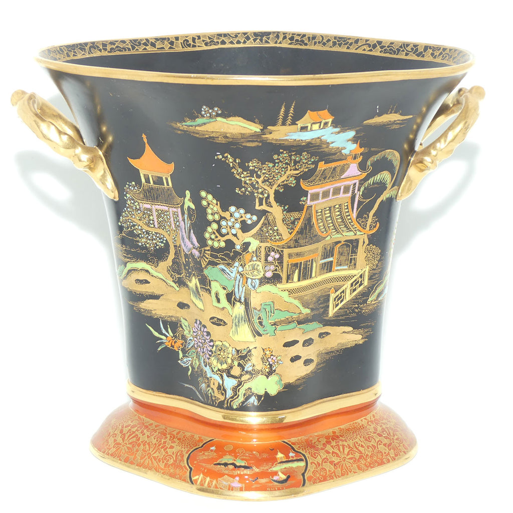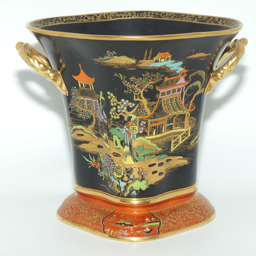 W & R Carlton Ware Temple pattern on Black Ground Don twin handle vase