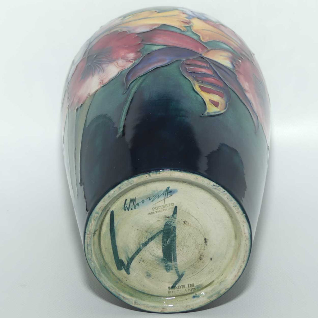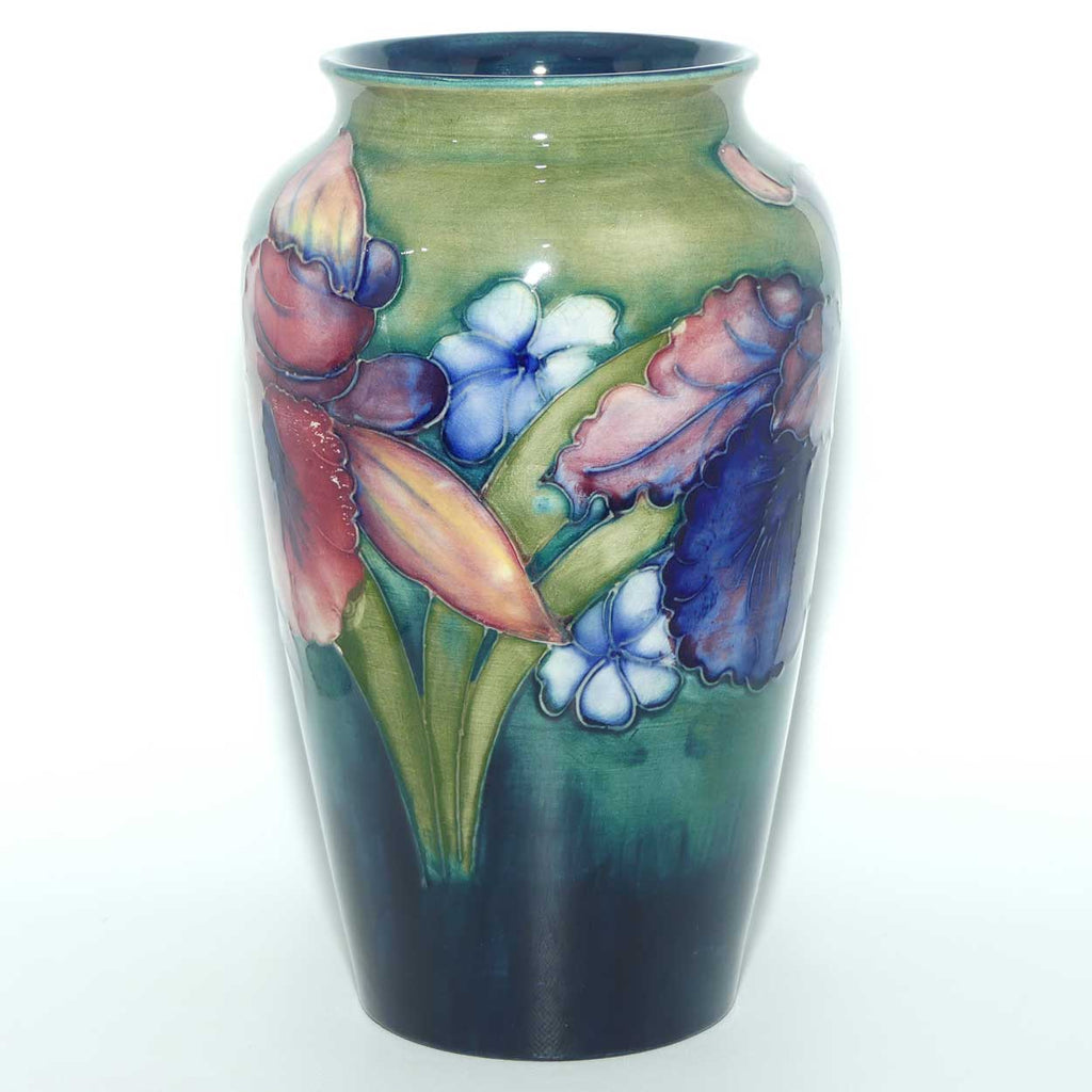 Walter Moorcroft Orchid on Light Green transition to Blue Ground vase