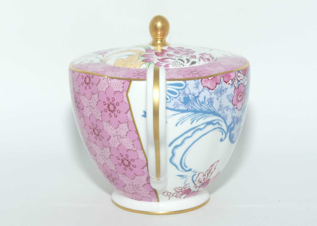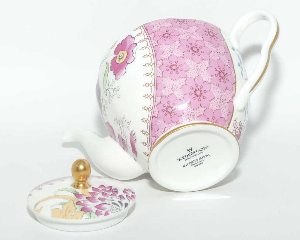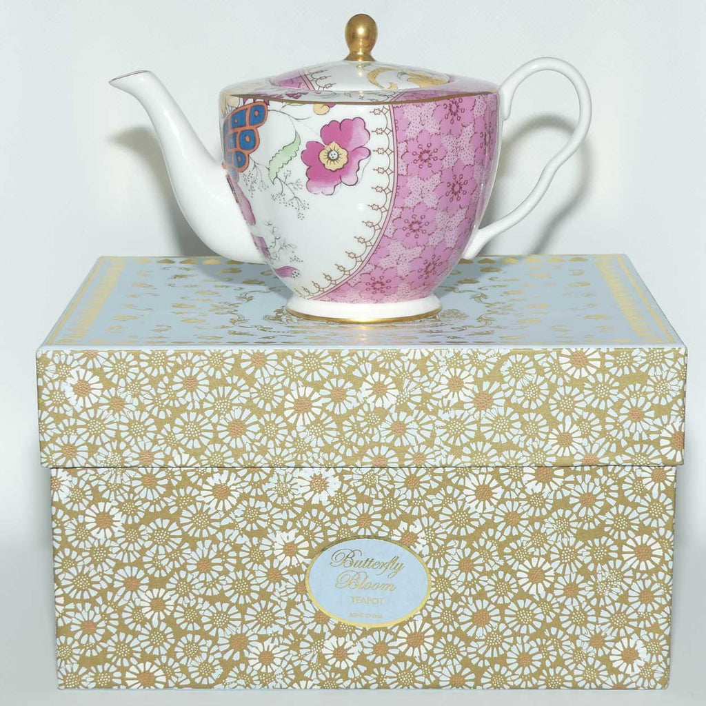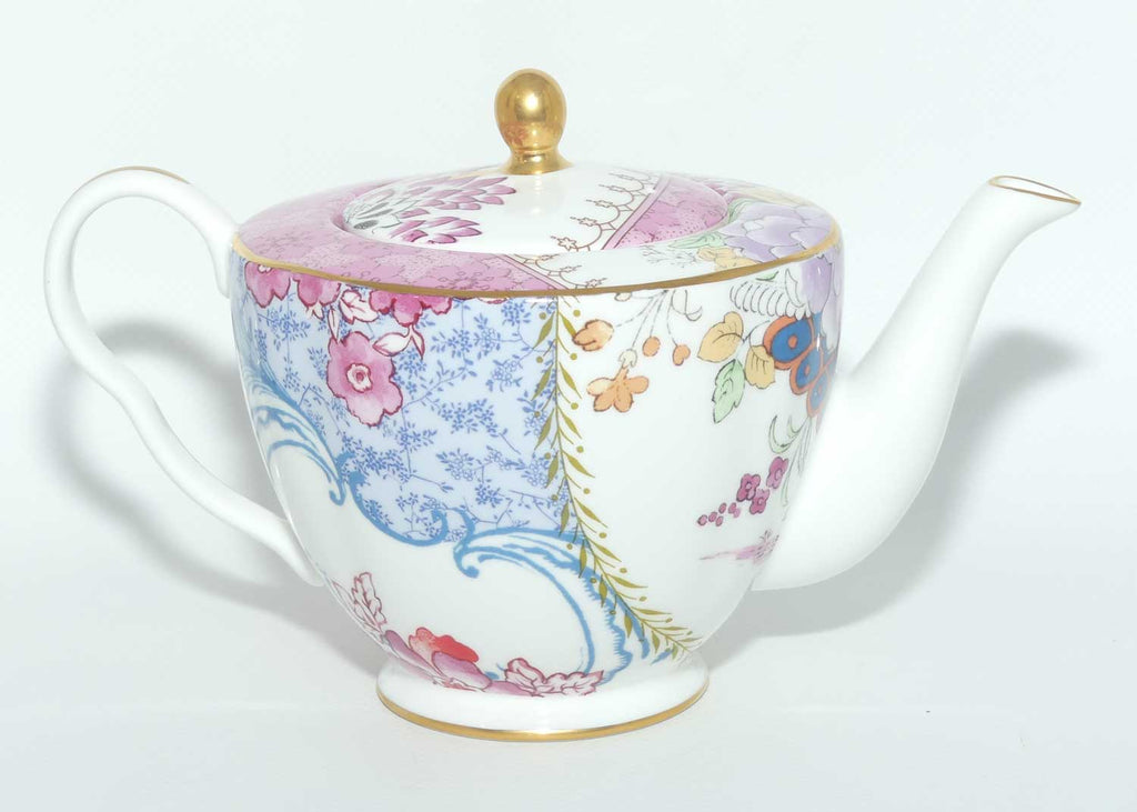 This teapot features an eclectic mix of pattern with abundant blooms of English and Oriental flowers and butterflies