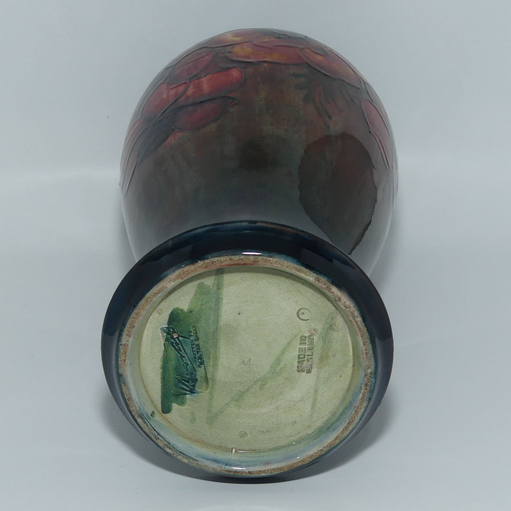 A superb rich and deep, quality example of William's Flambe glaze on one of the most recognizable broad leaf floral patterns, Anemone. Earlier versions of Anemone pattern, like this vase, often show superior attention to detail in decoration of the "side foliage"