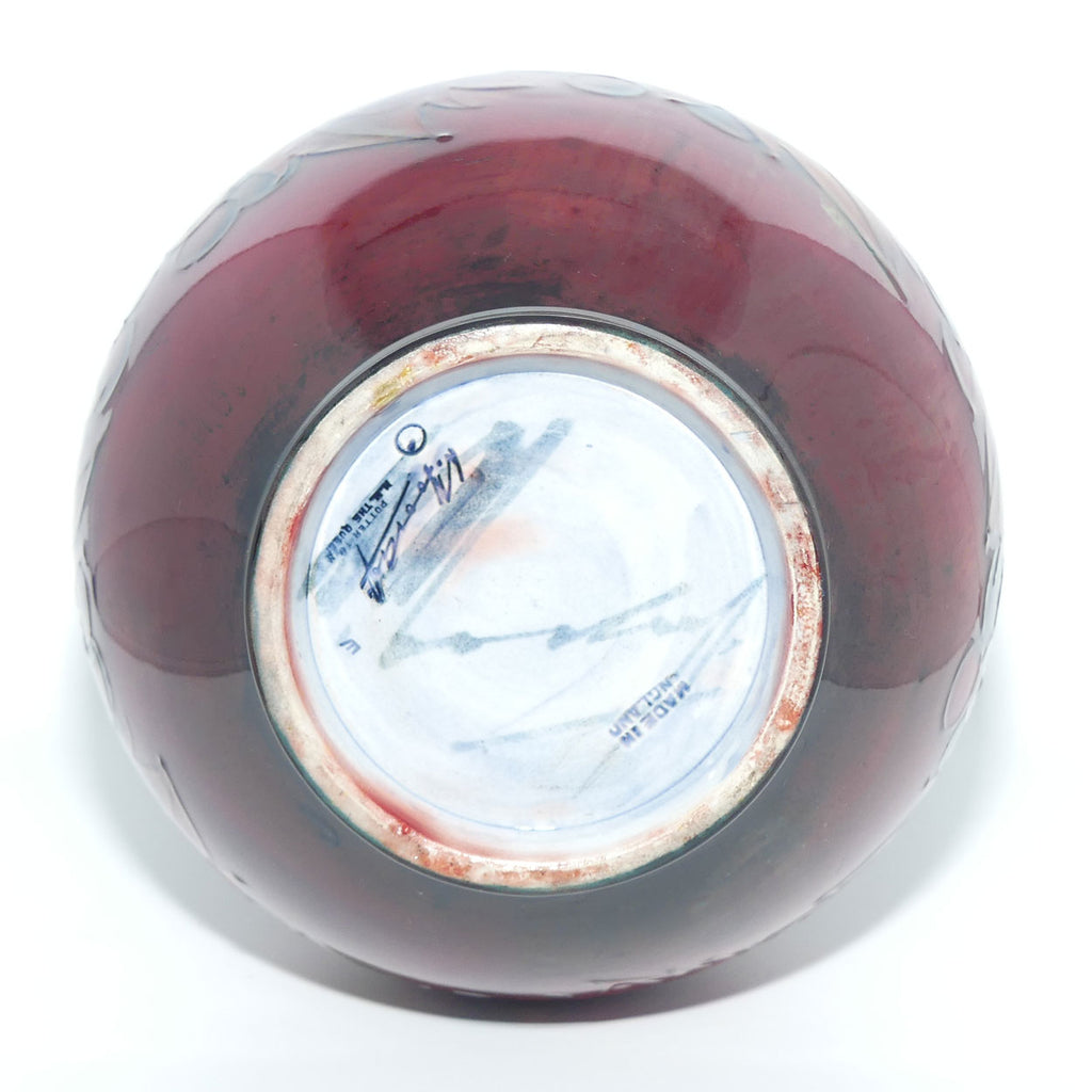 William Moorcroft Flambe Leaves and Fruit bulbous vase