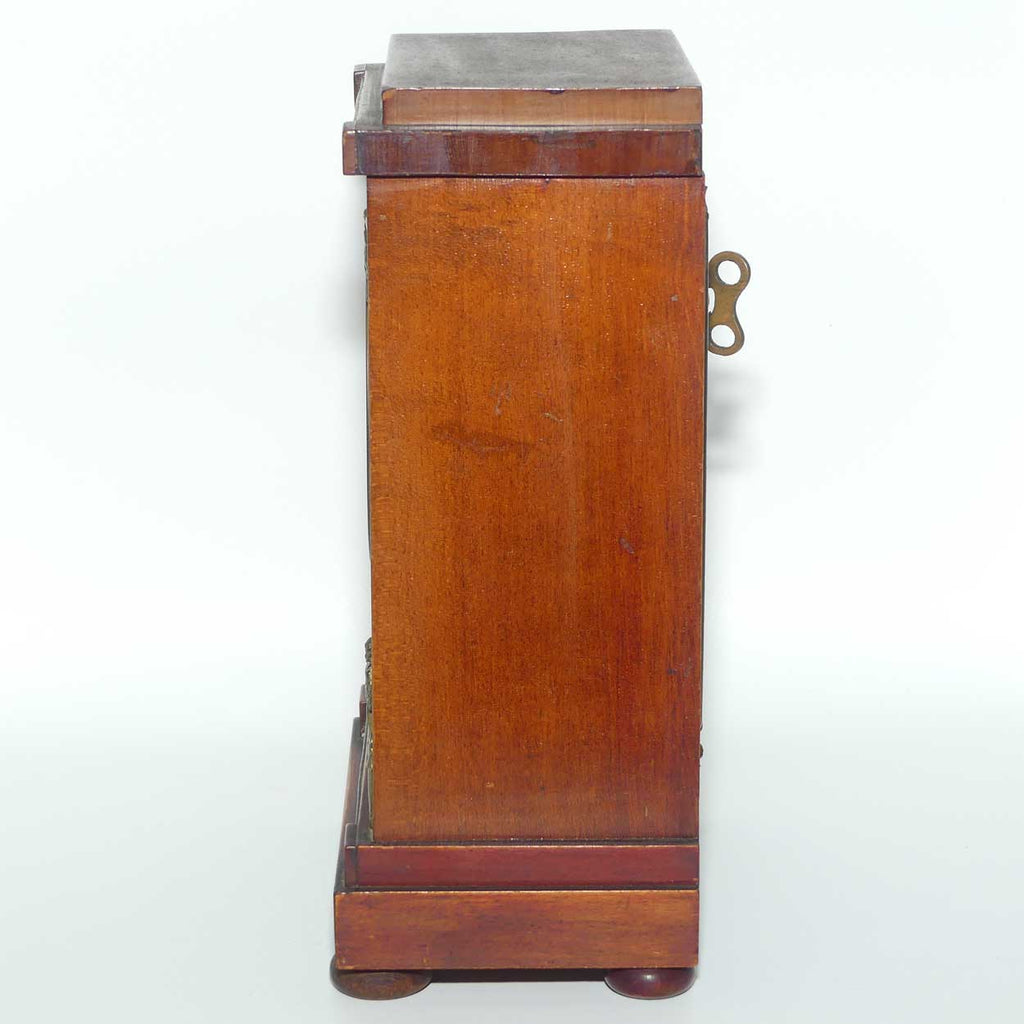 Hamburg American Clock Company Wurttemburg Crossed Arrows Mahogany case mantle clock, finished with Neoclassical brass decoration of Putti, a Chariot and Corinthian columns