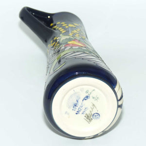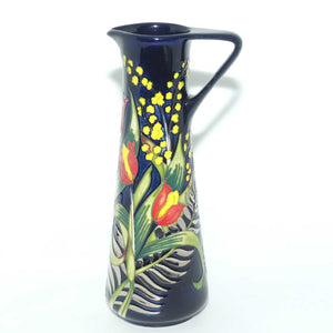 The ANZAC spirit or ANZAC legend is a motto upheld by both Australia and New Zealand. It is a specific reference to the shared characteristics of their soldiers, the qualities of whom were first and most valiantly shown on the battlefield in World War I. Some of the qualities are endurance, courage, ingenuity, good humour and mateship. A direct illustration of these brave soldiers expressing their virtues during the hardships and toils of war would not necessarily translate into art all that well. Instead, Moorcroft designer Nicola Slaney offers what she knows to be meaningful, touching and expressive: flowers. ANZAC Legend combines delicate boughs of yellow wattle representing Australia, the platinum lustred silver ferns of New Zealand and a red tulip, adopted as Turkey's floral emblem. Nicola has tastefully wrapped all three floral emblems around the popular jug shape and backed her design with a deep, sombre Moorcroft blue.