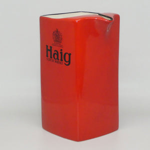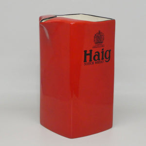 Water Whisky jugs were initially produced for use in pubs to add ice water to Whisky for mixing - but are now collectable for display in man caves or bars. Many of the jugs were made by Wade Regicor - who was prolific in this space, but other comapnies like Carltonware, Royal Doulton and Shelley produced them. The jug is stamped with the Royal Warrant By Appointment to Her Majesty the Queen Purveyors of Scotch Whisky | Haig Scotch Whisky