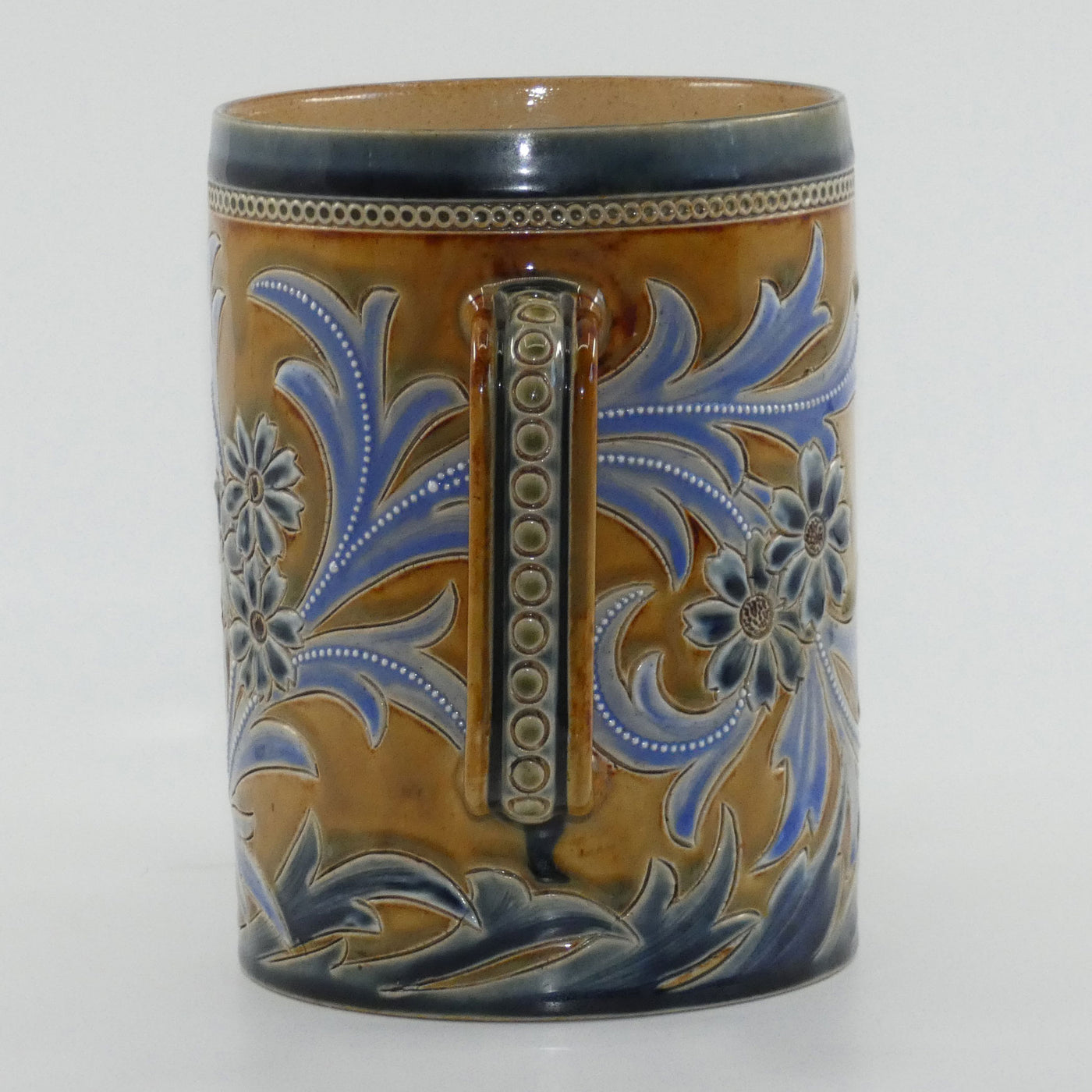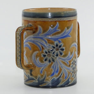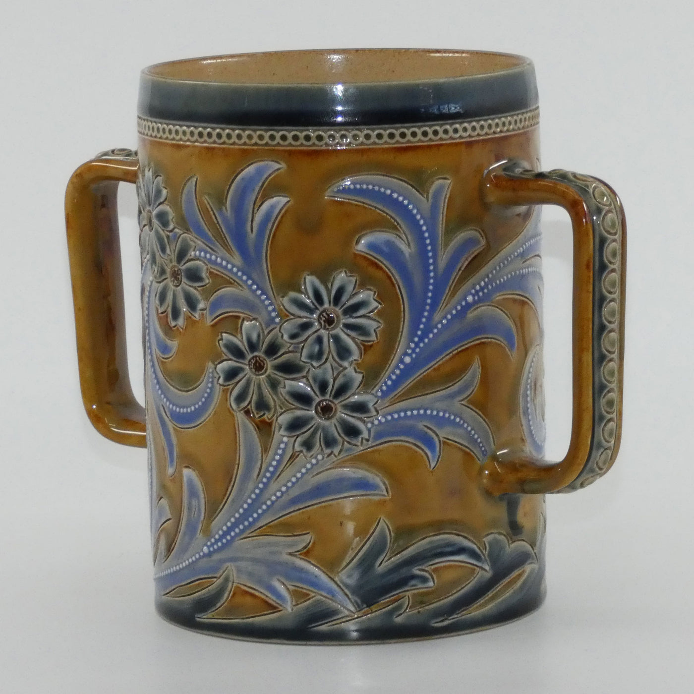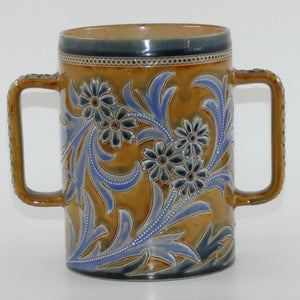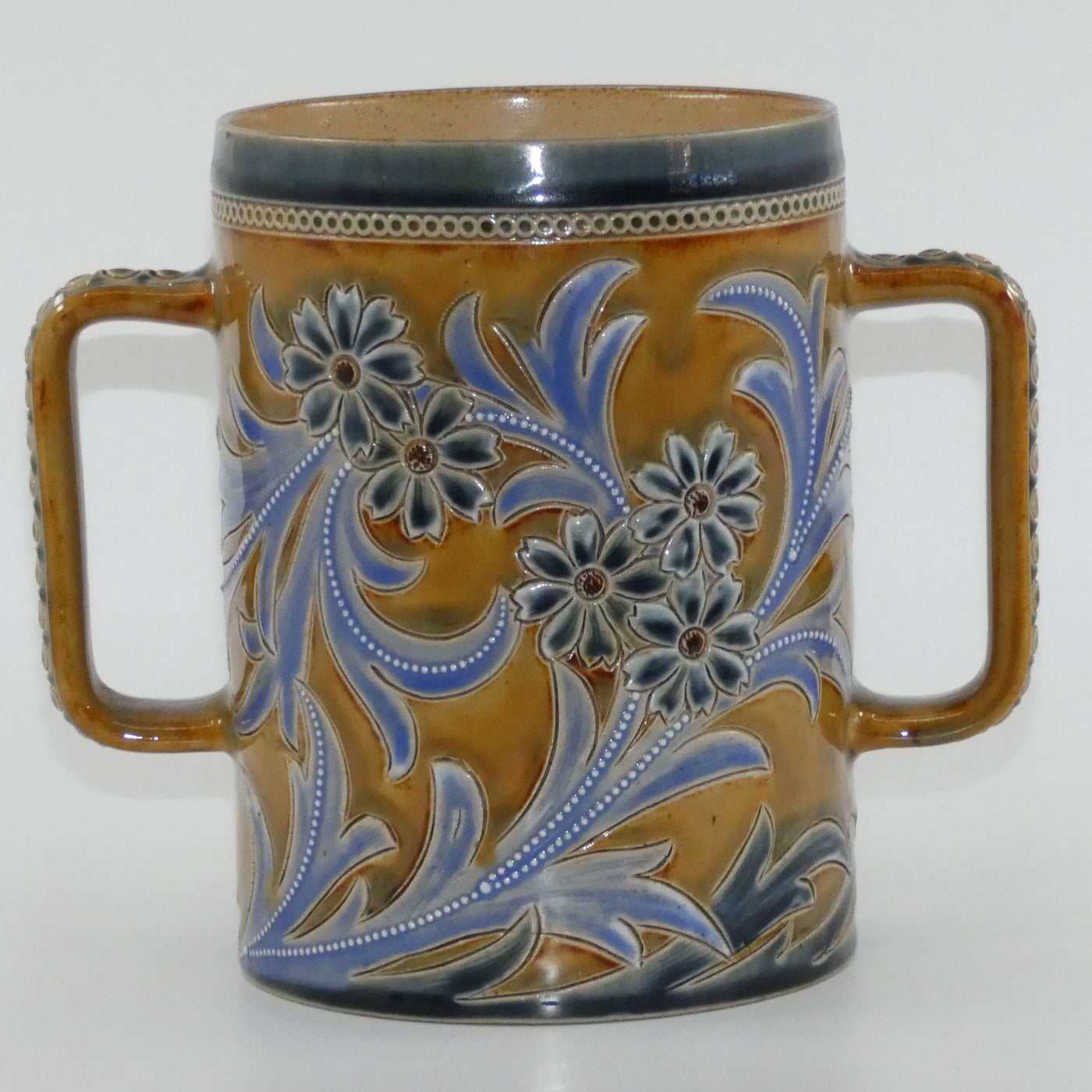 Doulton Lambeth stoneware double handled loving cup with beads, flowers and foliage by Eliza Simmance (signed to base of cup)