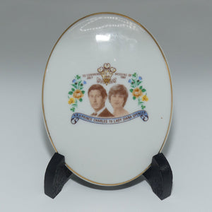 This oval porcelain plaque sits on a small wooden display stand