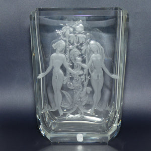 Kosta Sweden Engraved Adam and Eve | Garden of Eden vase by Elis Bergh