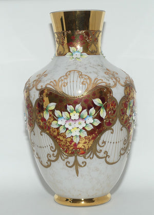 Bohemian Art Glass hand enamelled and gilt floral vase
