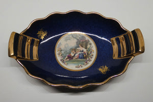 Carlton Ware Mottled Blue tab handle bowl with Courting Couple scene