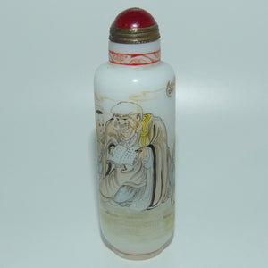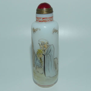 Bottle depicts a child being read to by and Old Man While other Elders look on, and they are attended to by a Younger Monk. Signed to base [as pictured]