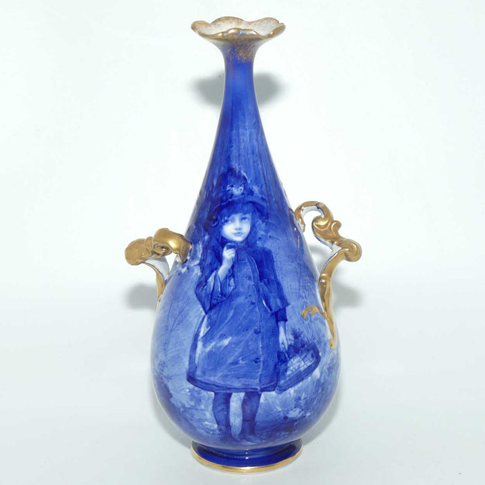 Doulton Burslem Blue Childrens narrow neck vase with fancy helix twist handles