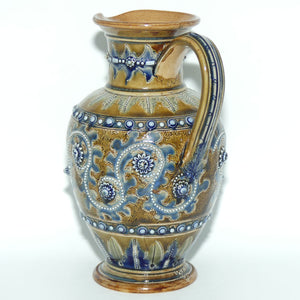 Doulton Lambeth stoneware jug with applied rosettes, beads and foliage