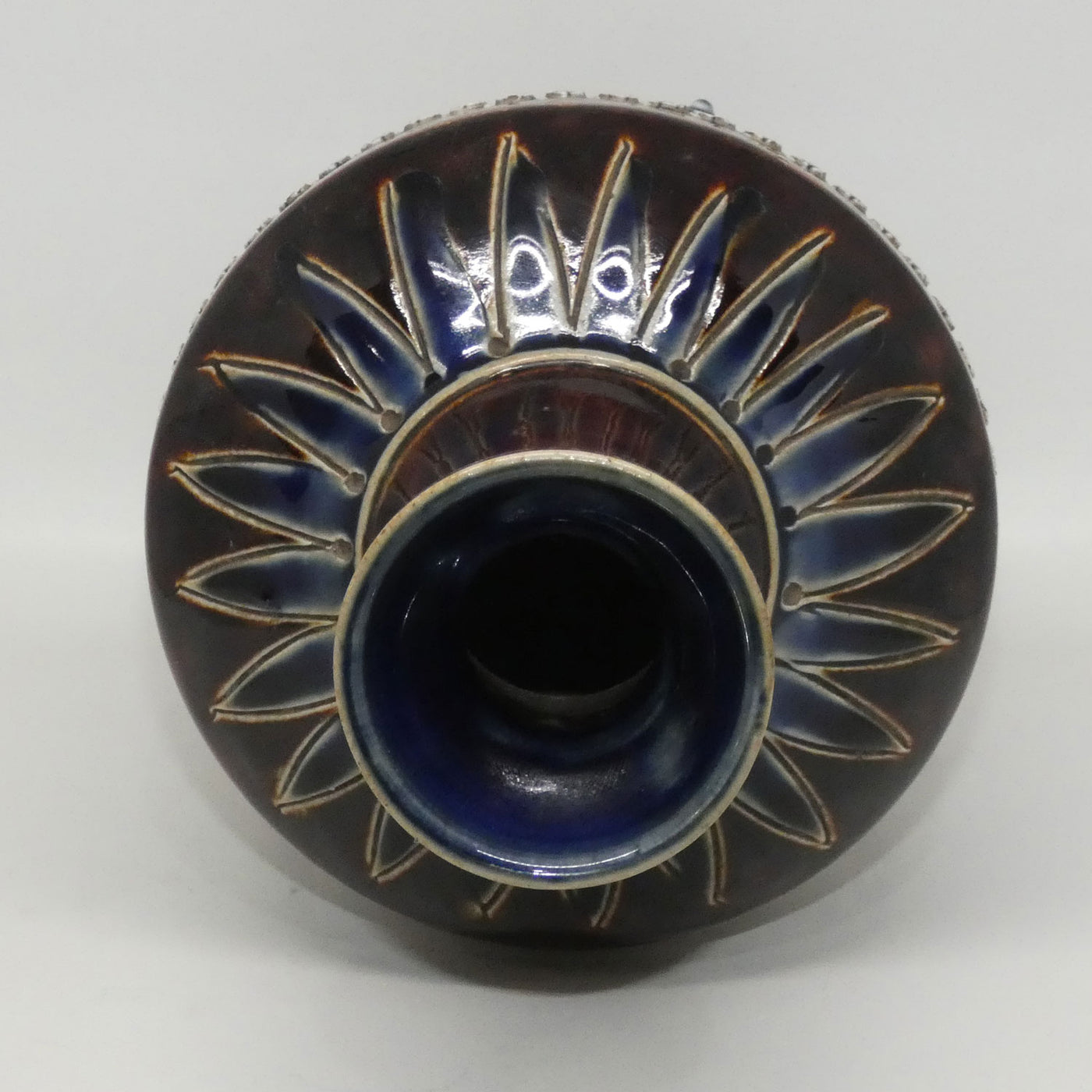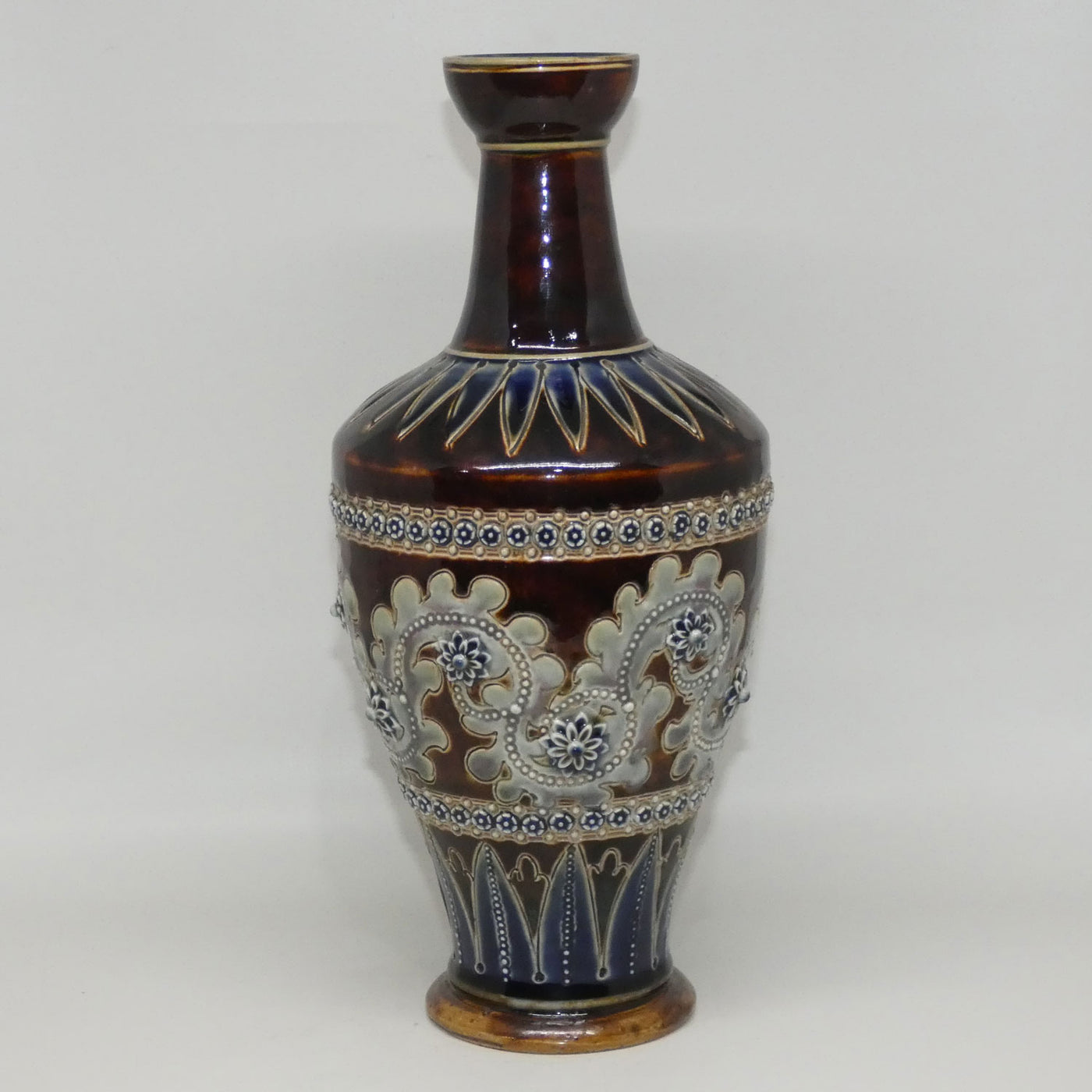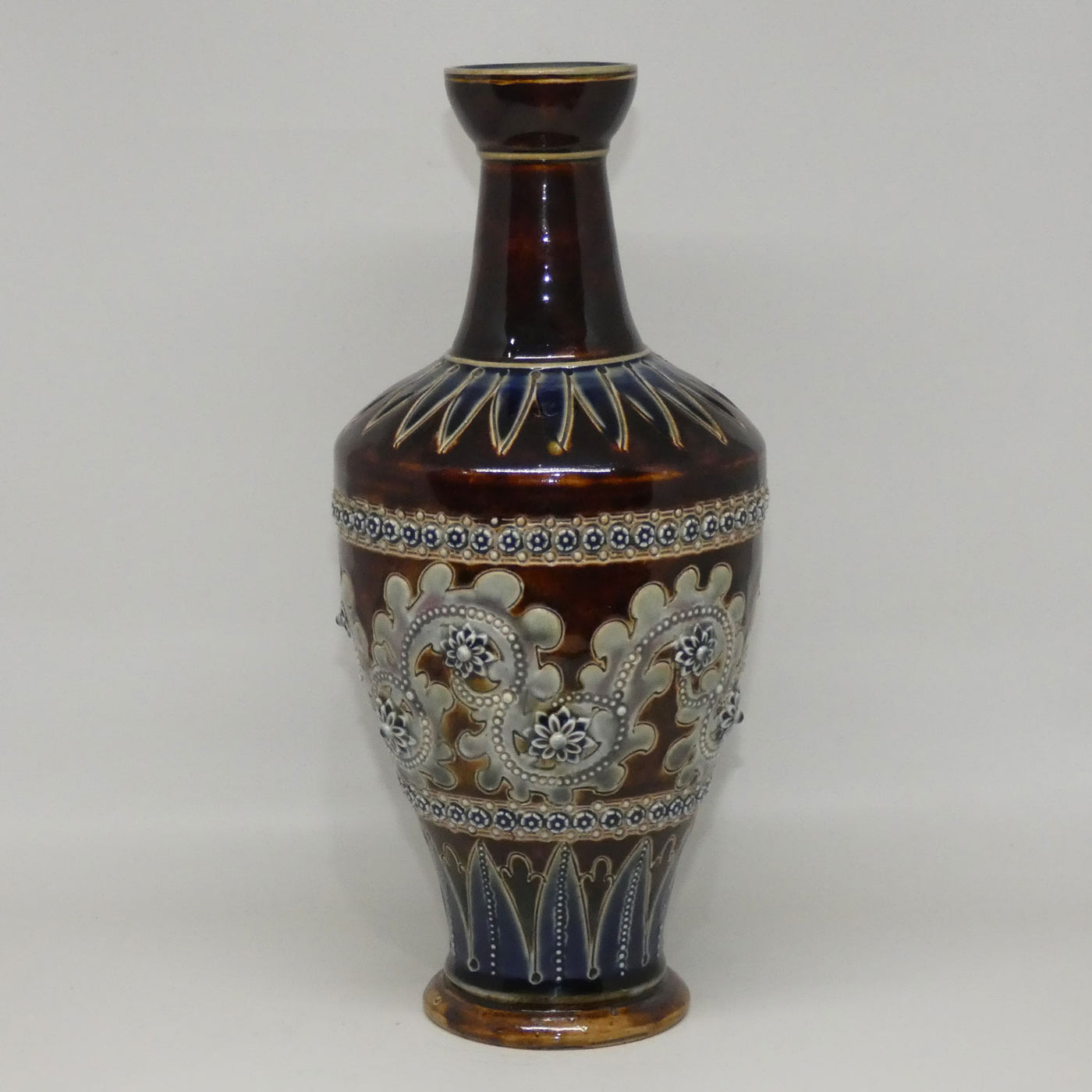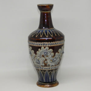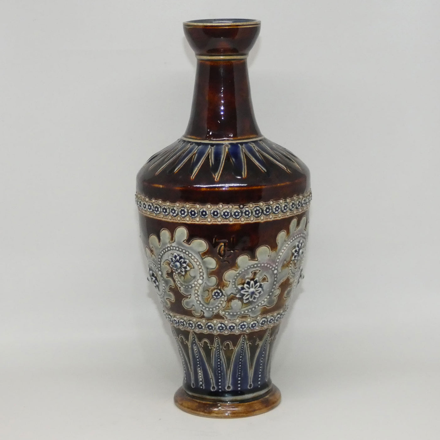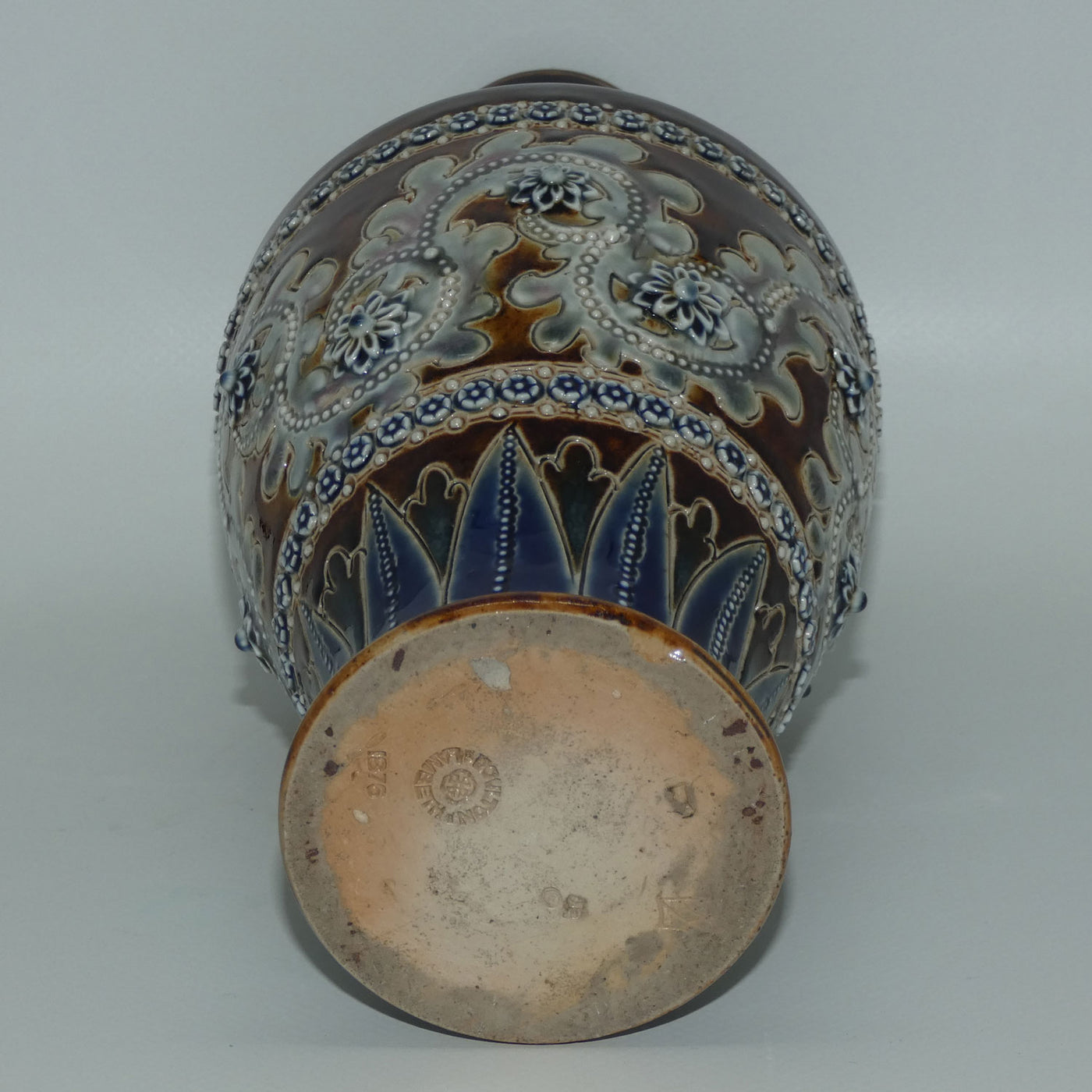 An elegant Doulton Lambeth vase decorated by George Tinworth with foliate beads and Brown and Blue glaze