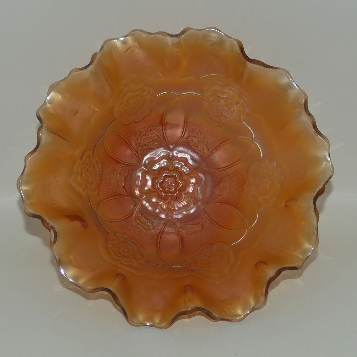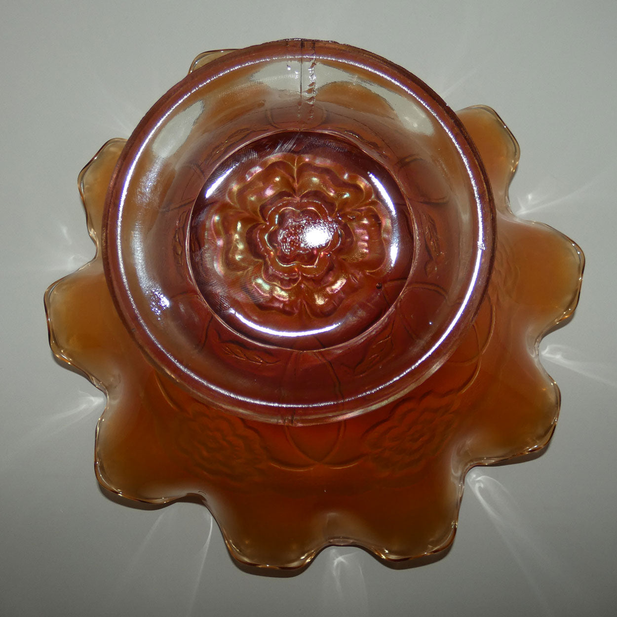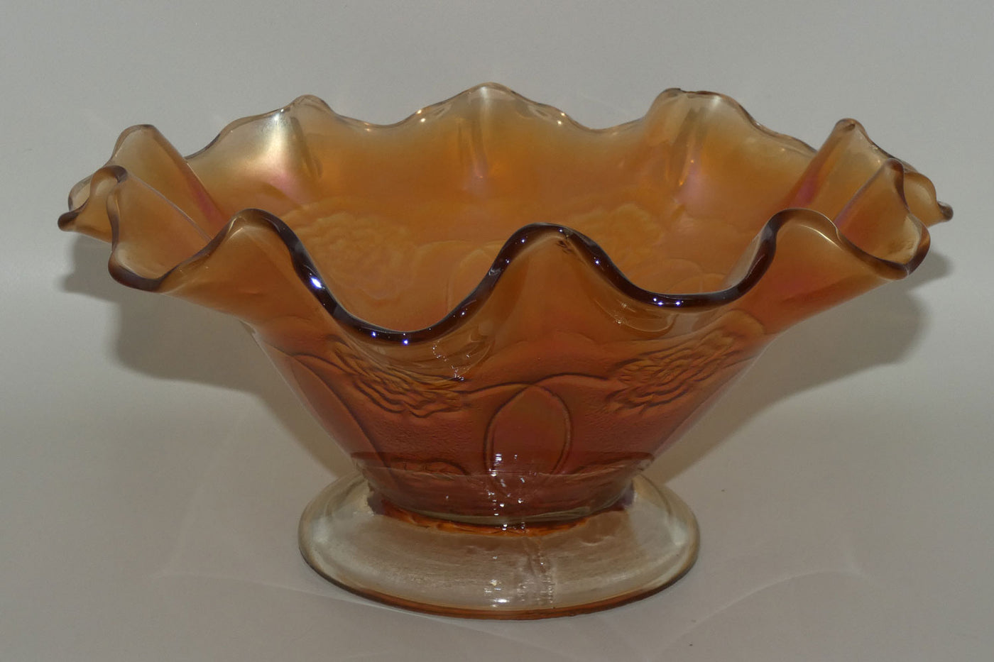 Dugan Marigold Marigold Carnival Glass Double Stem Rose pattern bowl #1