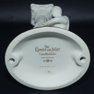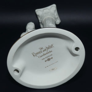 The tragic tale of Romeo and Juliet is one of the most enduring romances in Western literature. The ill fated lovers have been immortalised in almost every form, from opera to ballet to painting and sculpture, and of course, in William Shakespeare's timeless play. These candlesticks are by Stuart Mark Feldman and are handcrafted in fine bisque porcelain, hand finished and embellished with 24 KT gold.