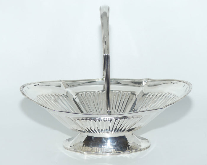 A classical George III basket with a gadrooned decoration and a reeded border, and a full armorial at centre and a small armorial at centre of handle