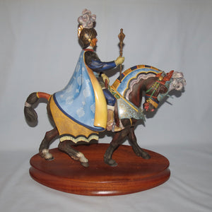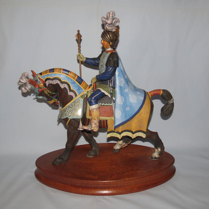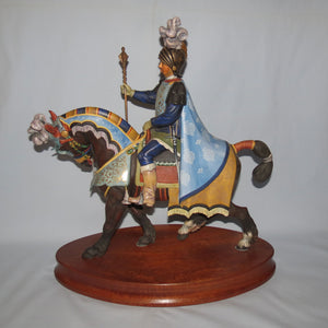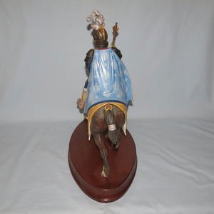 “The Palio” is a Royal Doulton figure designed by Peggy Davies, issued from 1971 to 1975 in a limited edition of 500. Painted in an exquisite blue, brown and black colourway, it depicts a participant in the Italian Palio event, the spectacular equestrian pageant held every summer in the ancient city of Siena, Italy. It is regarded as one of the scarcest of all Royal Doulton Prestige examples - as well less than 500 of the Limited Edition were made.