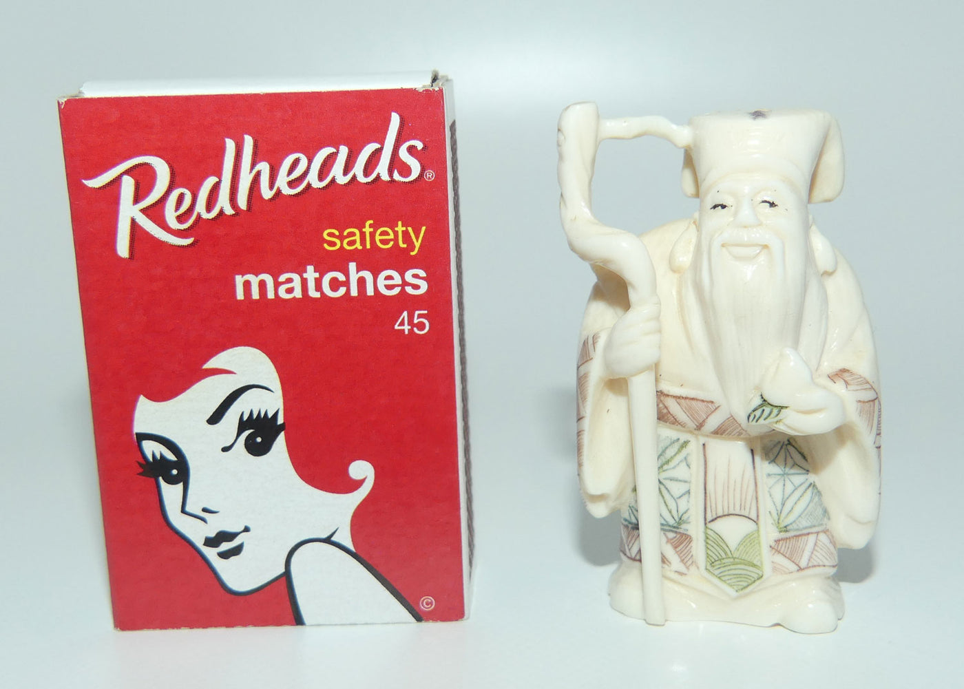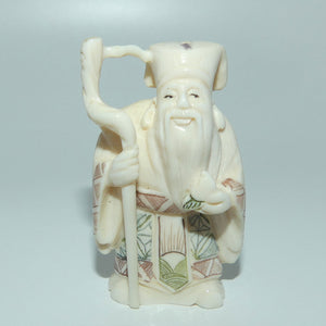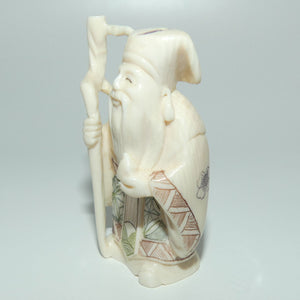Japanese Carved Ivory Netsuke | Showa era | Man with Beard and Staff | Jurojin