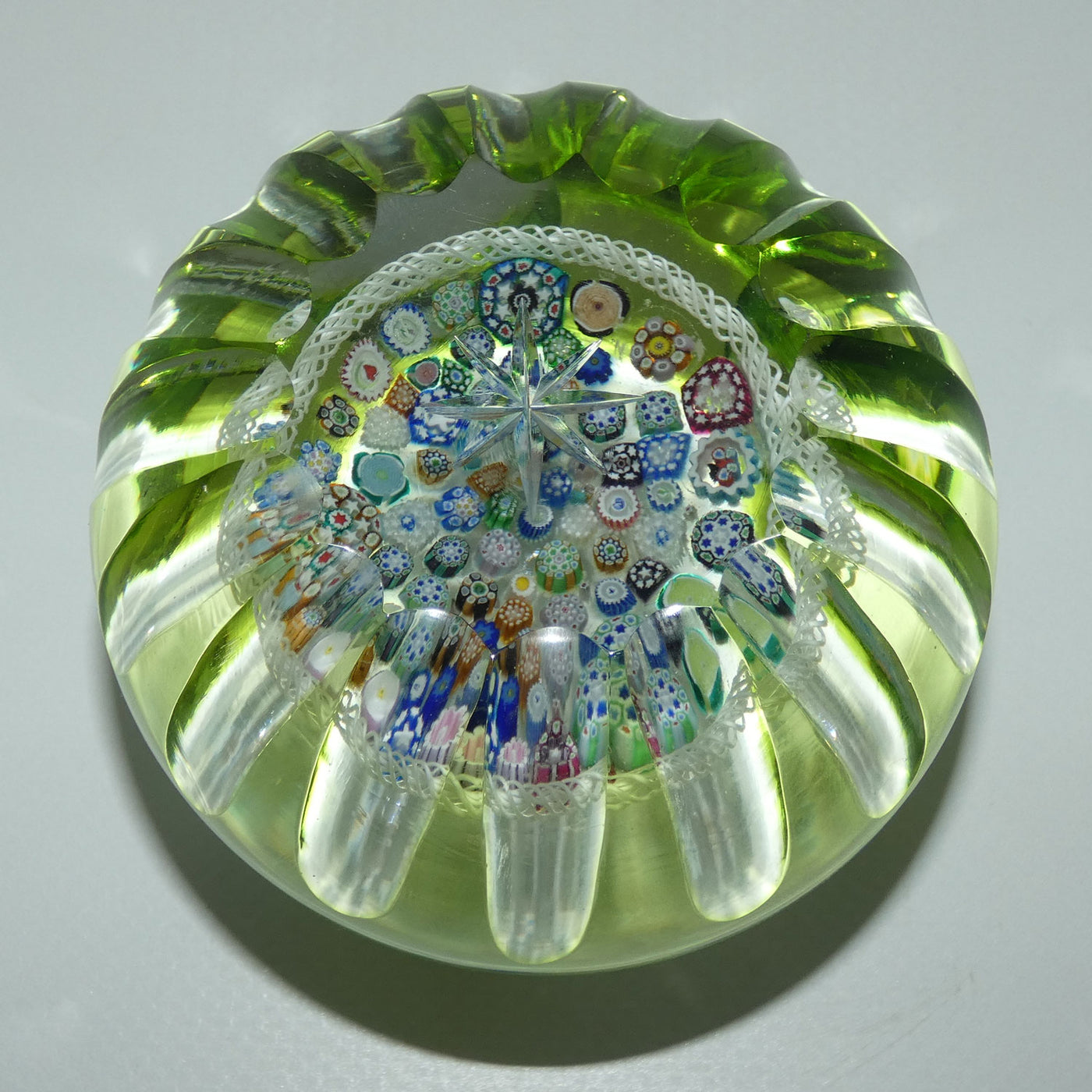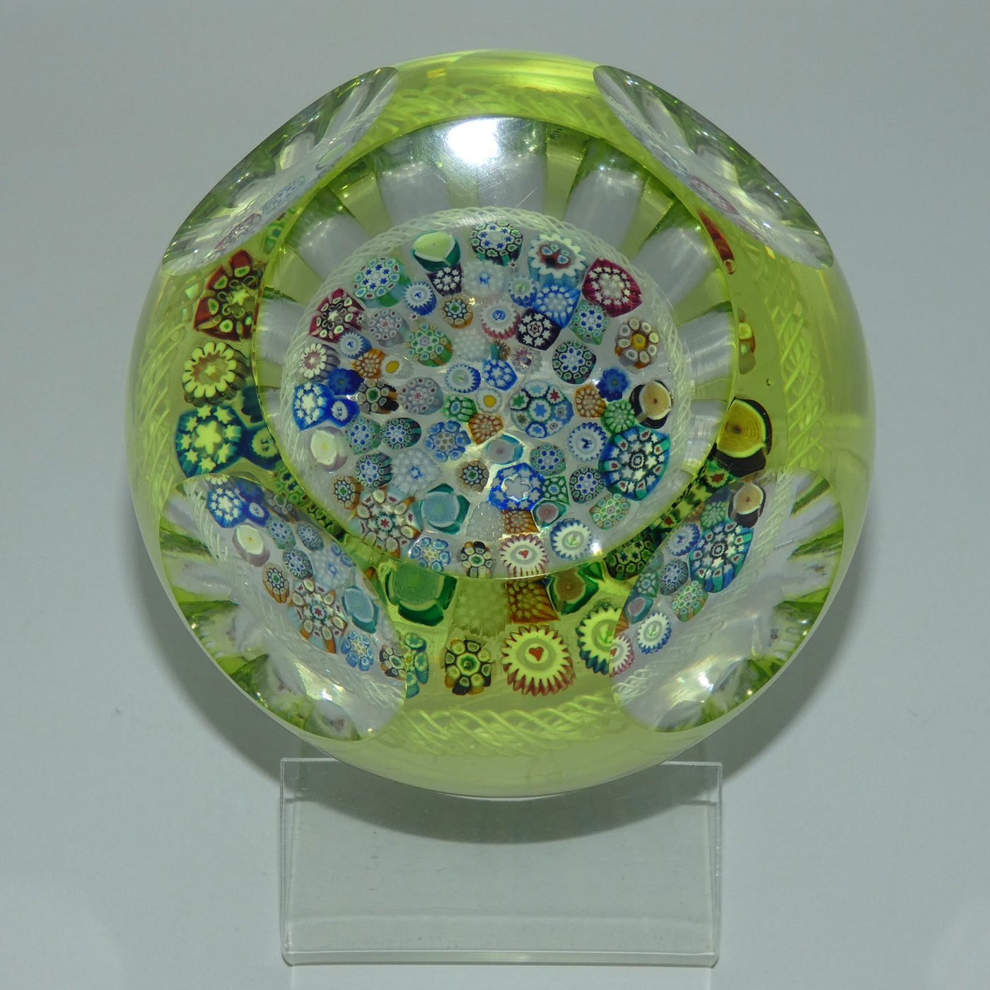 John Deacons Scotland Citrine Flash Overlay Closepack Millefiori paperweight
