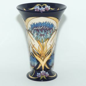 A contemporary take of a traditional Moorcroft Cornflower pattern. This is an exceptionally well priced Limited Edition, with the added bonus of being decorated outside and inside the mouth of the vase in a traditional Florian inspired design.