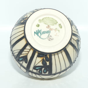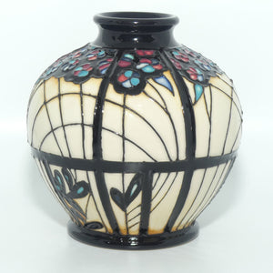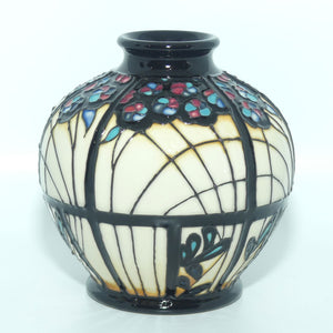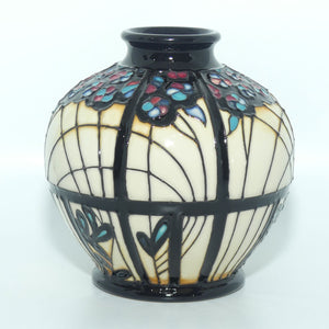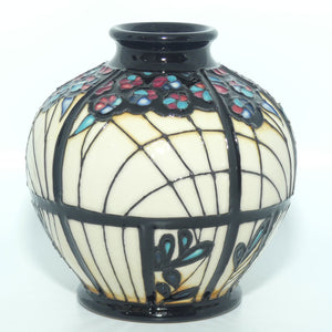 Designer, Nicola Slaney’s six-piece range, incorporates many of the elements of this iconic building’s stained-glass windows. The lead piece in the range is a framed plaque, that honours Delune with its central flower motif at the top of the plaque, under which intricate panels of flowers in shades of blue and purple are to be discovered. The curving lines of the Art Nouveau style bend in unison, carrying your eye downwards towards a series of turquoise leaves, each tubed with a double line of black tubelining. Each of the five additional pieces in the range has different linework, an homage by Nicola to the fluidity of Art Nouveau, a design style that encouraged individuality and expression.