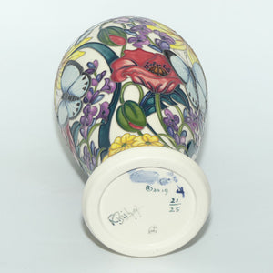 About Holly Blue Butterfly: A frequent visitor to gardens, the Holly Blue, was the butterfly that caught Rachel’s eye when she took a quiet stroll in the meadows surrounding her hometown in Cheshire. Coupled together with lavender, primroses, poppies and wild grasses, this vase is classic Rachel – with every part of the clay surface smothered in swirling lines of fine tubelining.
