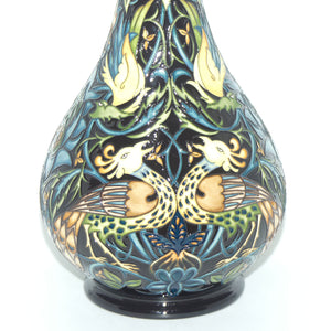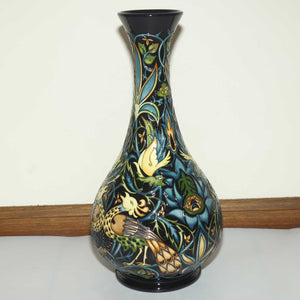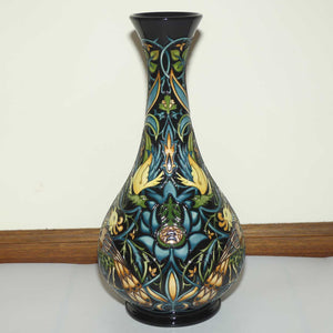 Morris believed that everybody has the right to a beautiful house, and also that the objects within it should be beautiful. Peacocks & Dragons by Nicola was inspired by the fabric adorning an armchair at Kelmscott Manor which featured peacocks and dragons. Her creation transports the incredible, interwoven detail of a Kelmscott fabric with symmetrical ribbons of foliage and mythical beasts so it comes alive into the world of Moorcroft pottery.