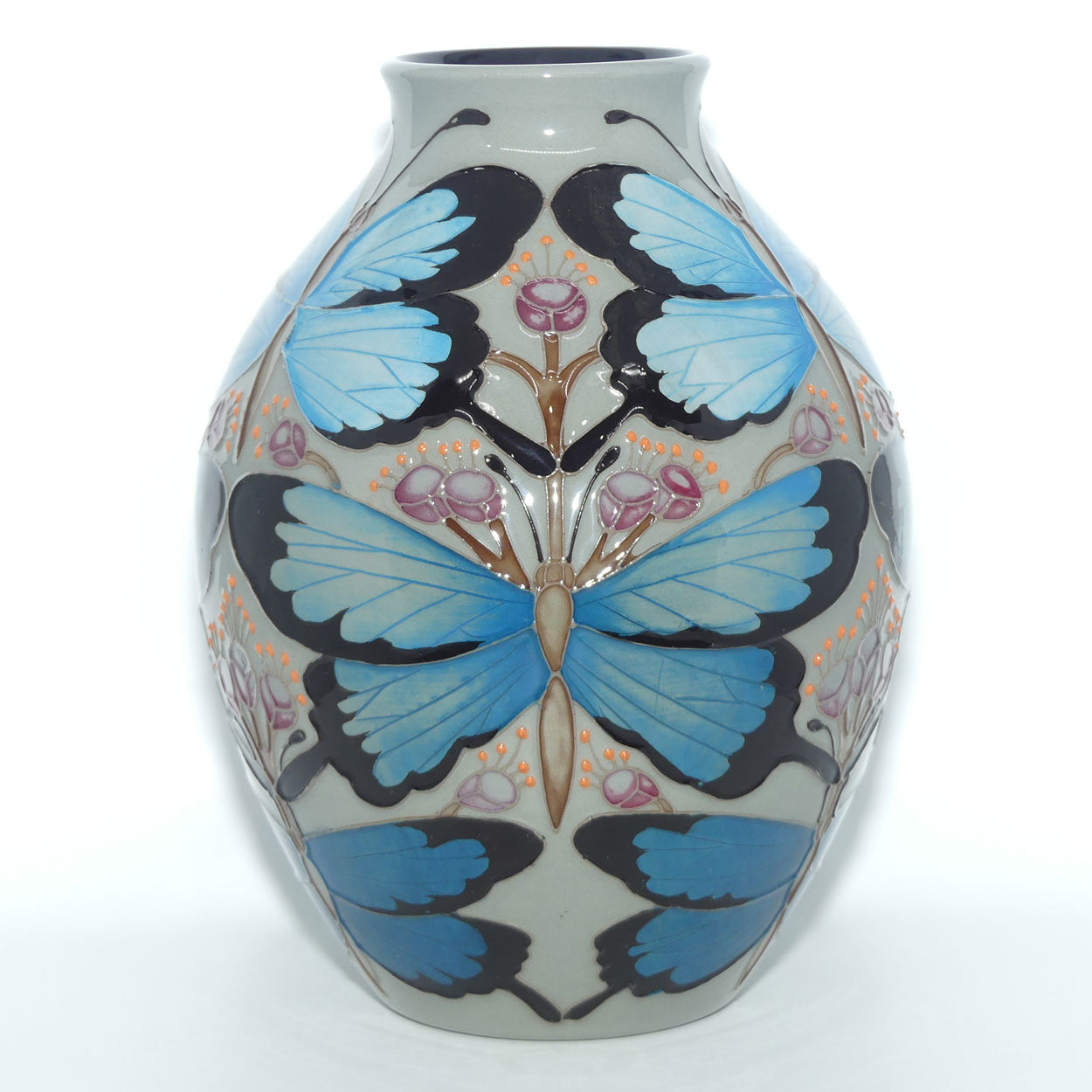 Moorcroft Australian Exclusive design Ulysses (Butterfly) on GREY body