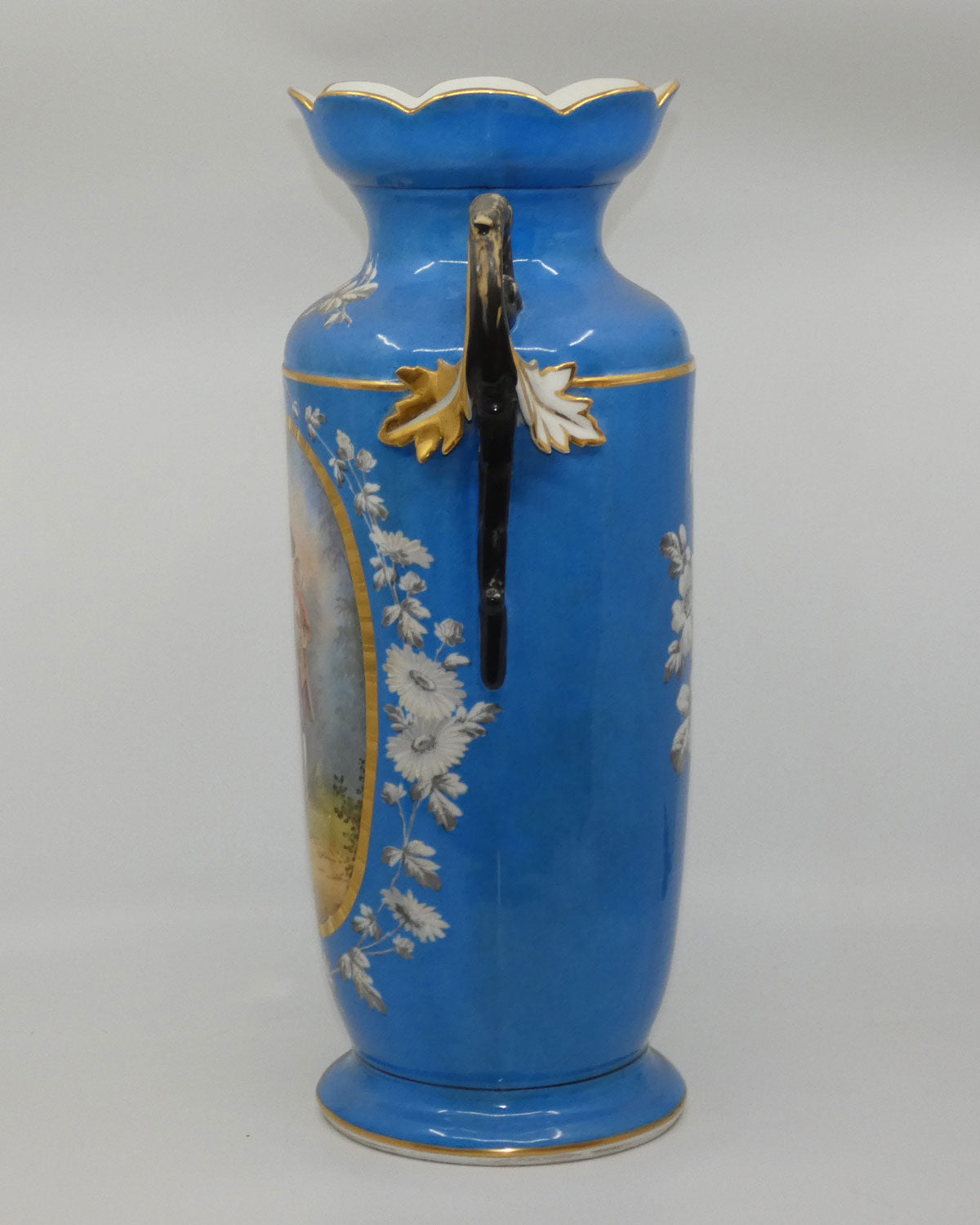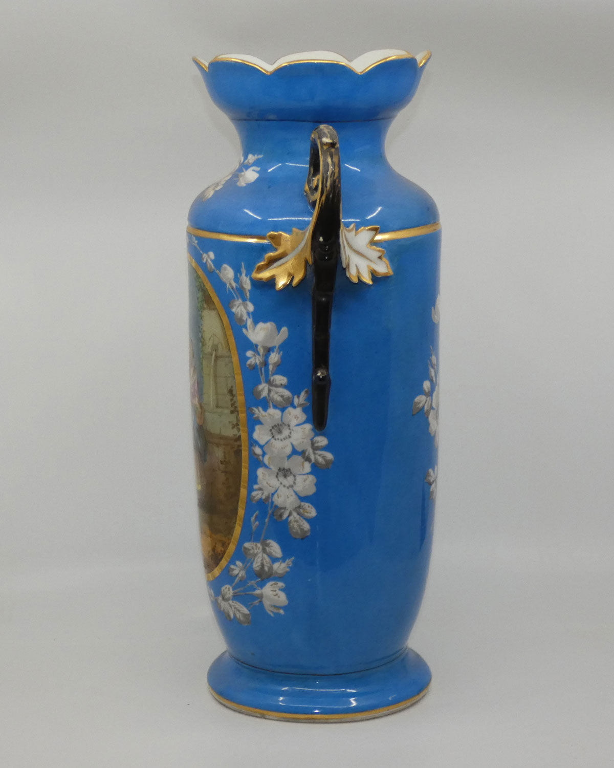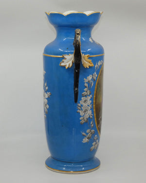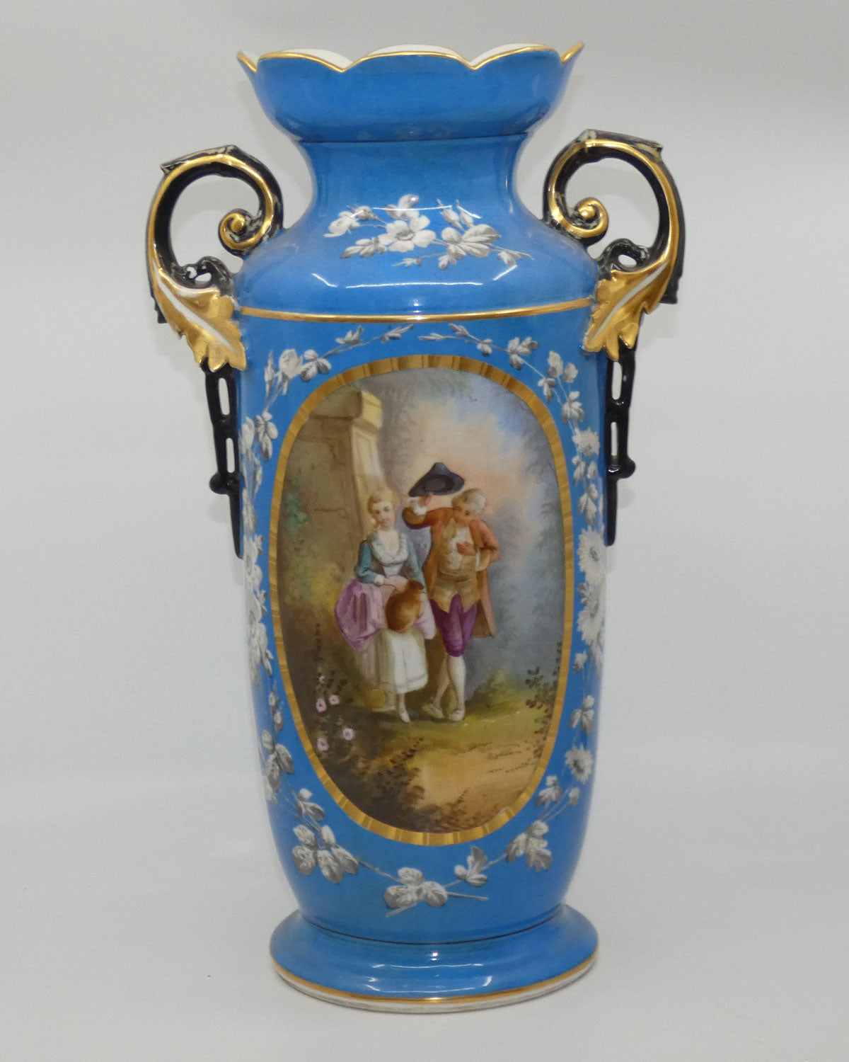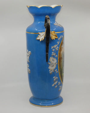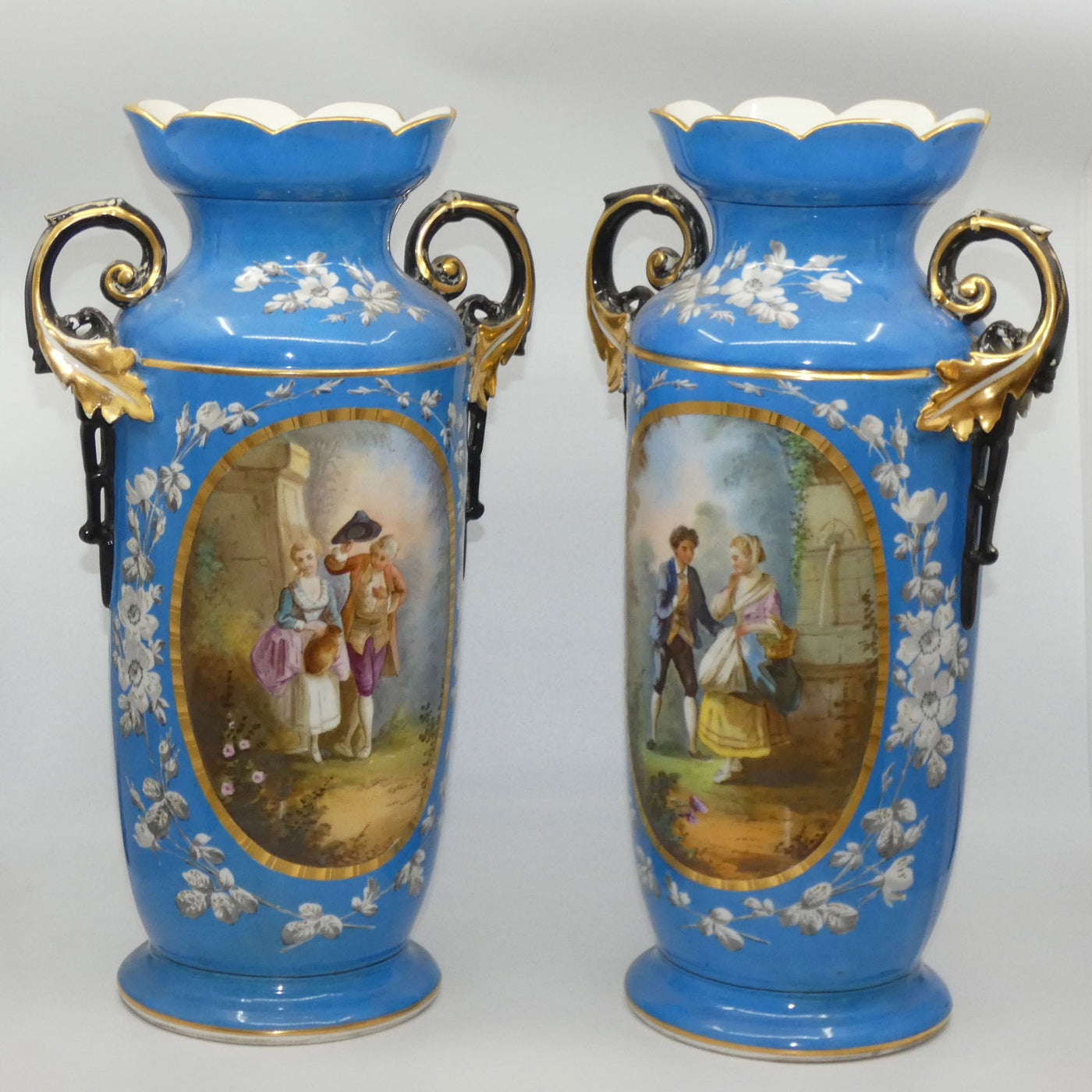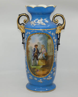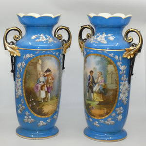 Pair of Continental European mantle vases with courting couple scenes