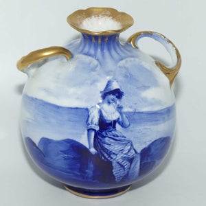 Royal Doulton Blue Childrens ball vase with helix twist handles