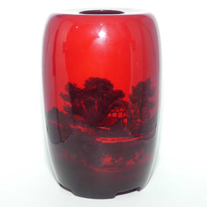 A feature of this vase is its unusual shape, with a 4 footed base, and flat top