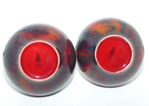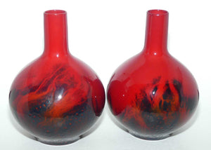 Royal Doulton Flambe Veined pair of tall neck bulbous vases (come with timber plinth bases for display)