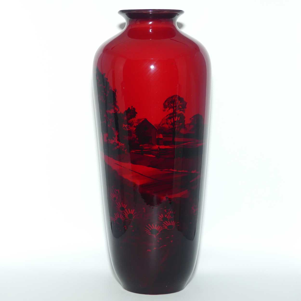 COLLECTORS NOTE: the highlight of this piece is the full decoration that goes right around the vase - the Thatched Cottage English Farmhouse on the front then trees and Daisies in the foreground as you go round