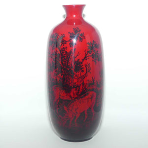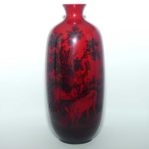 Royal Doulton Flambe Woodcut Highland Deer tall vase