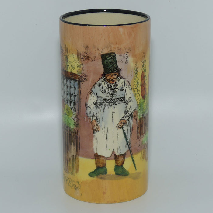 Scene 6: Front view of gaffer in buttoned smock with left hand holding angled stick
