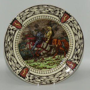 Scene 1 | Two knights, one in the foreground on a rearing horse, the other with a lance over his shoulder