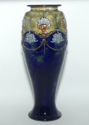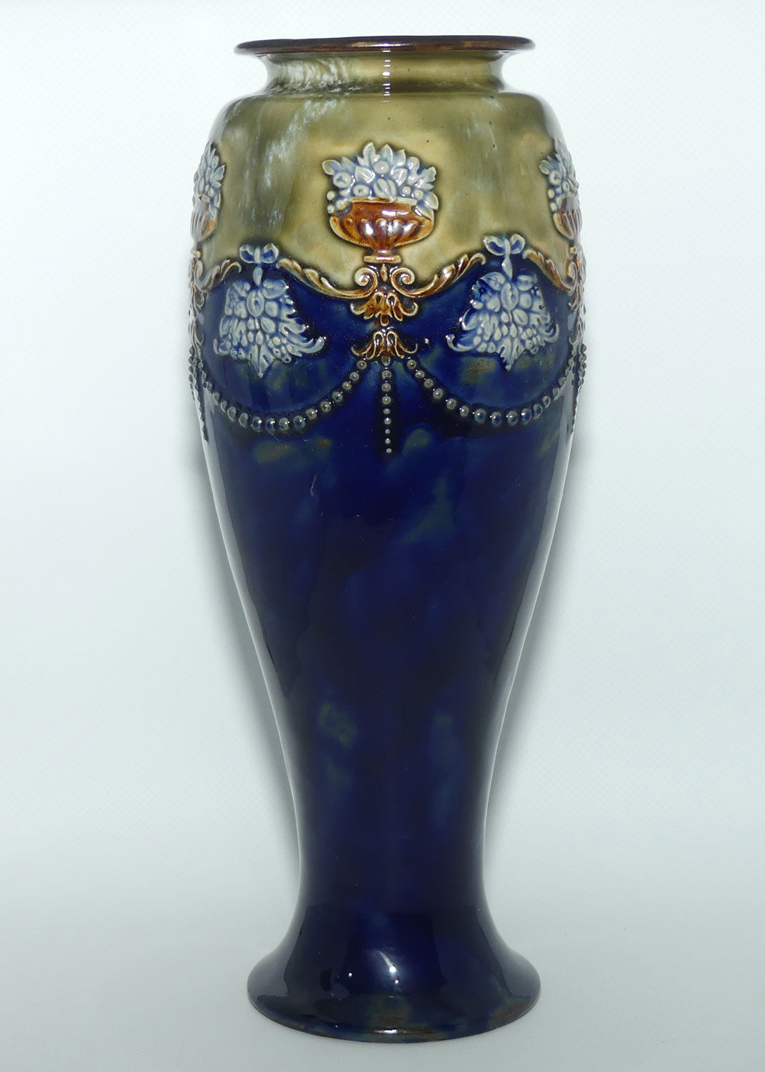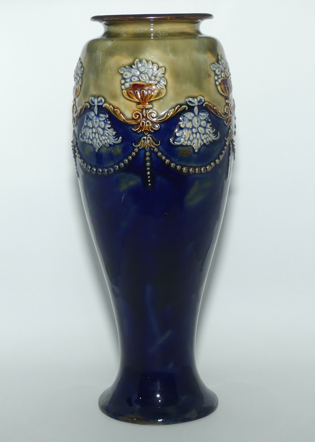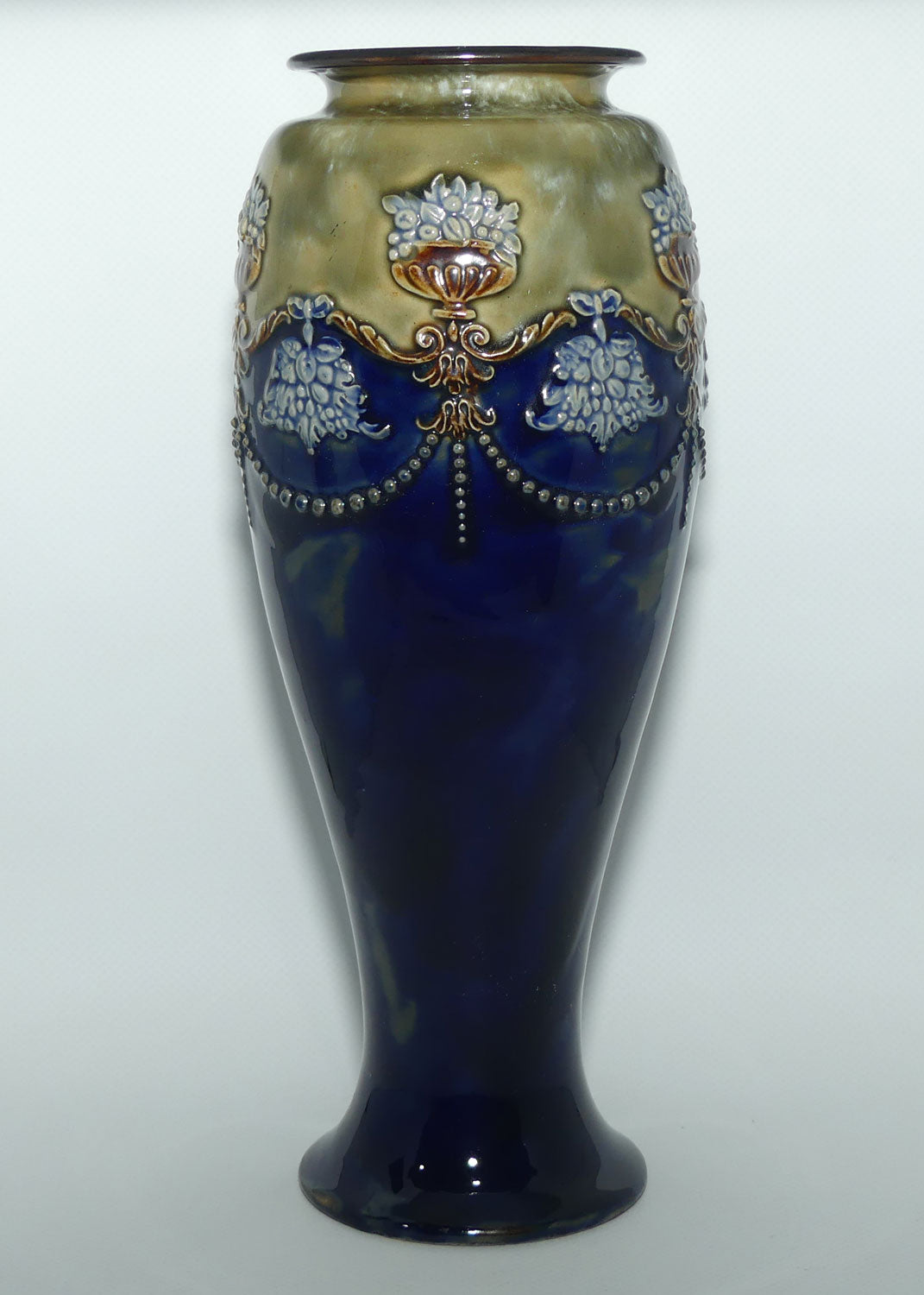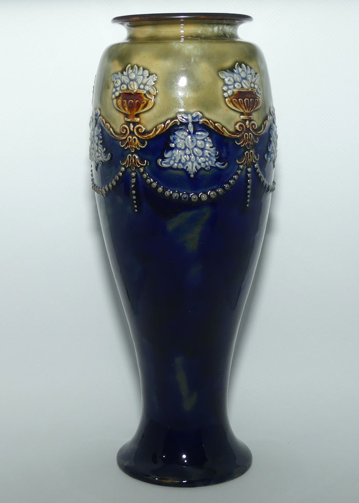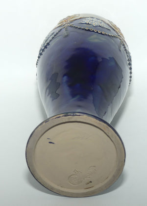 Royal Doulton stoneware vase with applied beads, foliage and urns filled with fruit stamped 8669