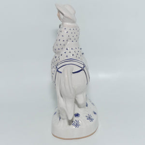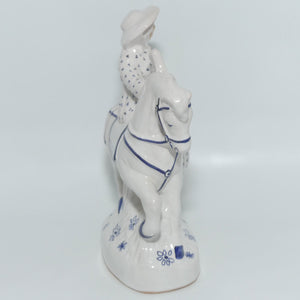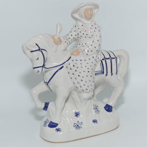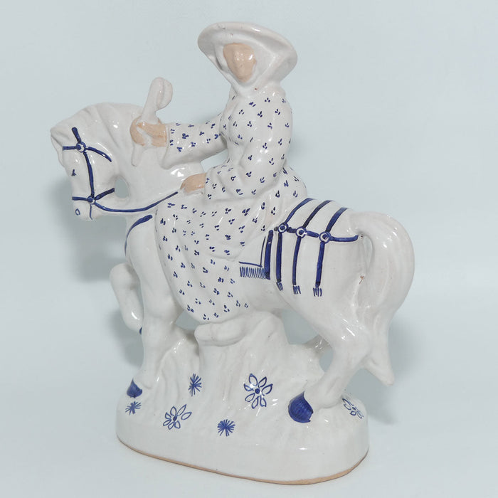 The Wife of Bath is the only pottery figure in the series modelled by sculptor/painter Gordon Davies and was originally conceived as a one-off character for Canterbury Cathedral’s gift shop. In her early days she was hand-painted only in Cobalt Blue & White, but today her decoration now ties in with the range’s medieval colour palette of Cobalt Blue, Terracotta, earthy Browns and a soft Sherwood Forest Green.