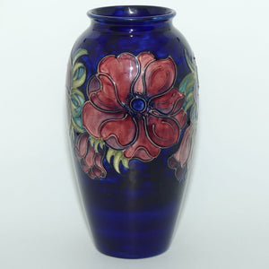 Walter Moorcroft Anemone on Blue ground tall cylinder vase