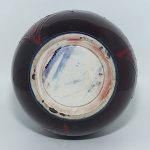 Decorated with Wisteria contained within Art Deco era Peacock Feather panels and Horizontal Banding - and highly desirable Flambe glaze