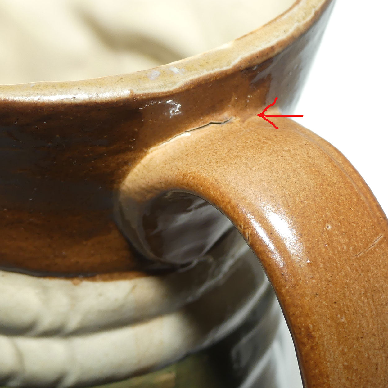 Small firing separation at handle junction, not damage, just a typical firing expansion at junction